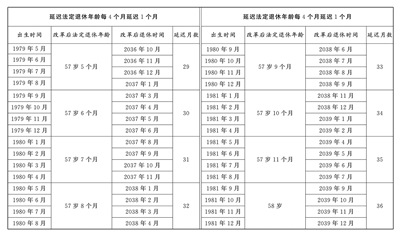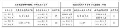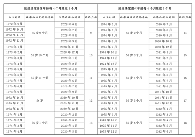 第一條 從2025年1月1日起,男職工和原法定退休年齡為五十五周歲的女職工,法定退休年齡每四個月延遲一個月,分別逐步延遲至六十三周歲和五十八周歲;原法定退休年齡為五十周歲的女職工,法定退休年齡每二個月延遲一個月,逐步延遲至五十五周歲。國家另有規(guī)定的,從其規(guī)定。