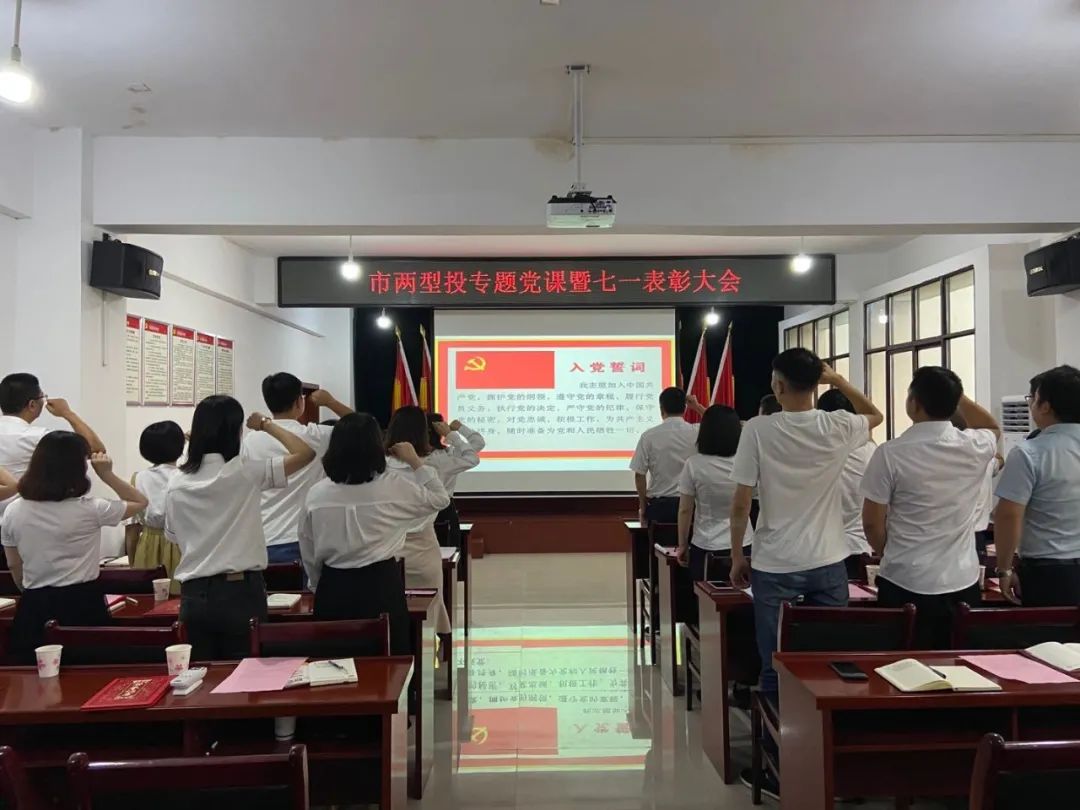 會上,發(fā)展了新黨員,表彰了一批優(yōu)秀黨員。全體黨員面對黨旗舉起右手,重溫入黨誓詞,不忘初心,牢記使命。