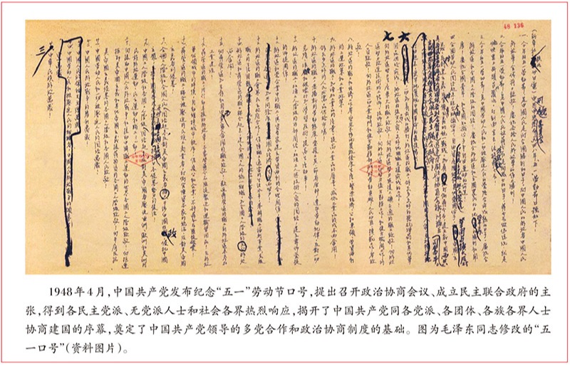 抗日戰(zhàn)爭勝利后,國民黨瘋狂鎮(zhèn)壓民主運動,主要成立于抗日戰(zhàn)爭和解放戰(zhàn)爭時期的各民主黨派在反對國民黨獨裁專制、爭取民主自由的斗爭中,逐漸認(rèn)識到只有中國共產(chǎn)黨才能救中國,只有跟著中國共產(chǎn)黨走才有光明前景。他們拋棄幻想,更加堅定地選擇與中國共產(chǎn)黨并肩戰(zhàn)斗。中國共產(chǎn)黨同各民主黨派建立了親密的合作關(guān)系,真誠歡迎各民主黨派參加協(xié)商建國,對多黨合作態(tài)度堅定而明確。1948年4月,中國共產(chǎn)黨發(fā)布紀(jì)念“五一”勞動節(jié)口號,提出召開政治協(xié)商會議、成立民主聯(lián)合政府的主張,得到各民主黨派、無黨派人士和社會各界熱烈響應(yīng),揭開了中國共產(chǎn)黨同各黨派、各團(tuán)體、各族各界人士協(xié)商建國的序幕,奠定了中國共產(chǎn)黨領(lǐng)導(dǎo)的多黨合作和政治協(xié)商制度的基礎(chǔ)。1949年9月,由中國共產(chǎn)黨和各民主黨派、人民團(tuán)體、無黨派民主人士參加的中國人民政治協(xié)商會議第一屆全體會議召開,通過了具有臨時憲法性質(zhì)的《中國人民政治協(xié)商會議共同綱領(lǐng)》,標(biāo)志著中國新型政黨制度的確立。
