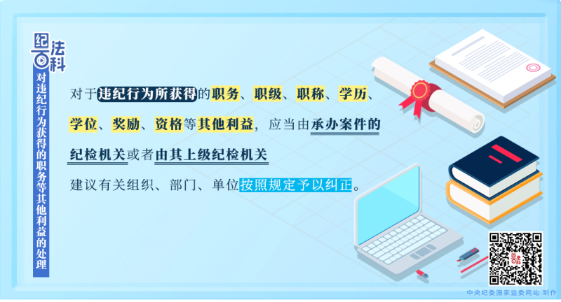 《中國共產(chǎn)黨紀(jì)律處分條例》第四十三條規(guī)定:對(duì)于違紀(jì)行為所獲得的職務(wù)、職級(jí)、職稱、學(xué)歷、學(xué)位、獎(jiǎng)勵(lì)、資格等其他利益,應(yīng)當(dāng)由承辦案件的紀(jì)檢機(jī)關(guān)或者由其上級(jí)紀(jì)檢機(jī)關(guān)建議有關(guān)組織、部門、單位按照規(guī)定予以糾正。