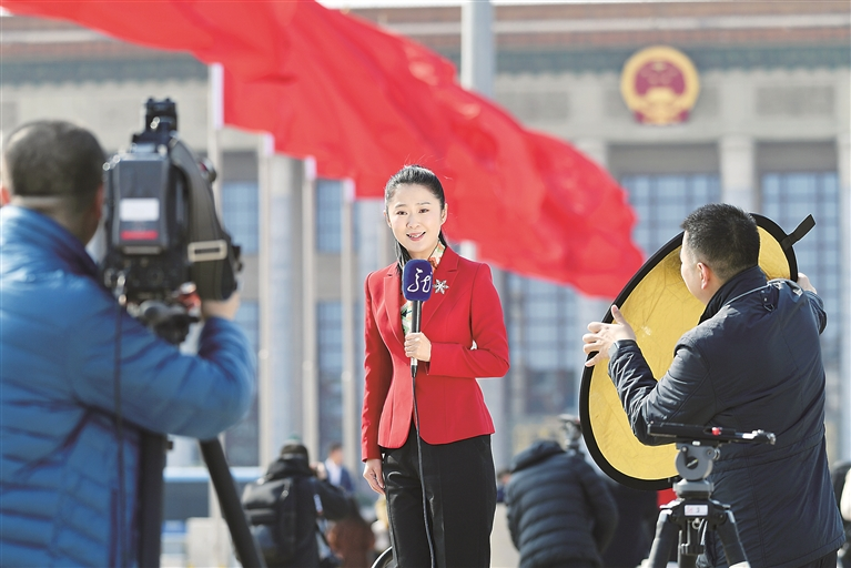堅(jiān)持團(tuán)結(jié)穩(wěn)定鼓勁、正面宣傳為主,才能唱響主旋律,傳播正能量,不斷鞏固和壯大主流思想輿論,弘揚(yáng)社會(huì)主義核心價(jià)值觀,為培育積極理性社會(huì)心態(tài)、促進(jìn)社會(huì)和諧穩(wěn)定提供精神養(yǎng)料。圖為今年全國兩會(huì)期間,媒體記者在人民大會(huì)堂外進(jìn)行報(bào)道。圖片來源:視覺中國