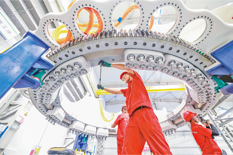 黨的二十屆三中全會(huì)強(qiáng)調(diào)要建設(shè)一流產(chǎn)業(yè)技術(shù)工人隊(duì)伍。產(chǎn)業(yè)工人是工人階級(jí)的主體力量,各級(jí)工會(huì)要更好團(tuán)結(jié)動(dòng)員廣大職工為進(jìn)一步全面深化改革、推進(jìn)中國(guó)式現(xiàn)代化作貢獻(xiàn)。圖為2024年7月23日,河北省隆化縣一家風(fēng)電設(shè)備企業(yè)的工人在車間工作。 新華社發(fā) 李秀清/攝