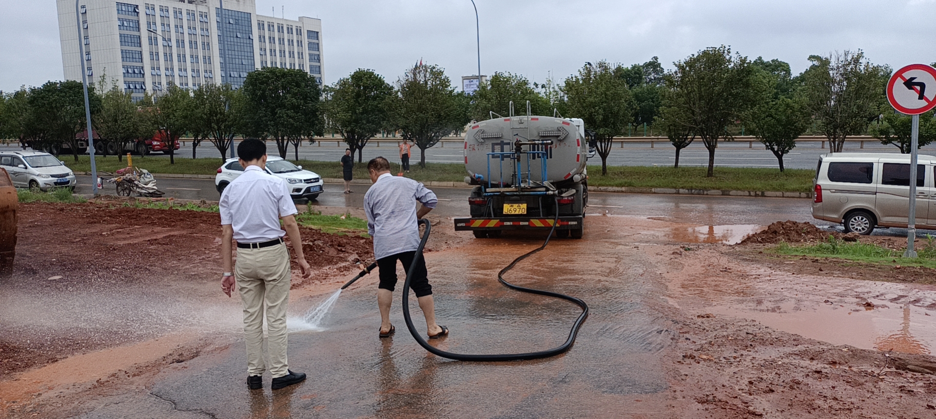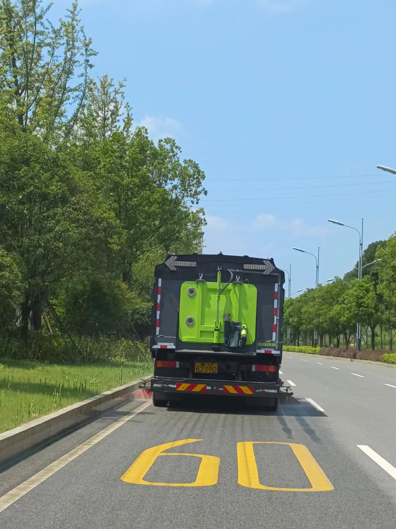 對魚形湖東路、魚形湖西路、魚形山路、及319國道段進行道路清掃保潔工作;